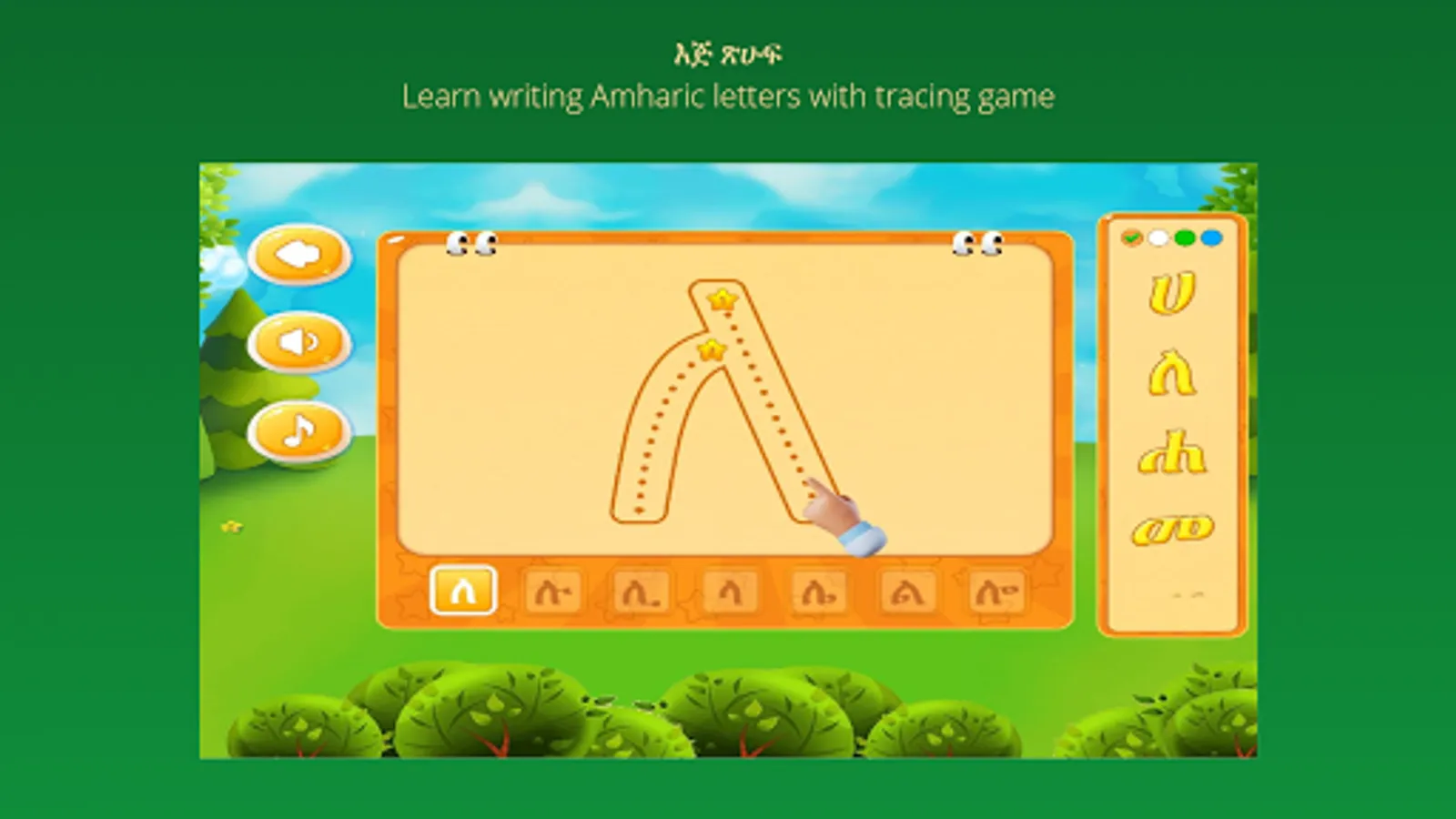 1. Tracing : learn and exercise Amharic letters writing through a very accurate tracing game. use the hand guide, numbering and the guide dots to learn the steps of writing each letter. you can use a multi-color writer to exercise the tracing.