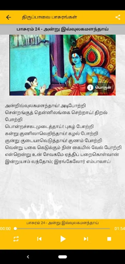 8. Automatic sync between the pasuram page and the audio will give the user a rich learning experience.