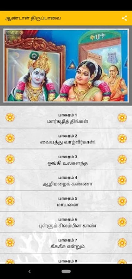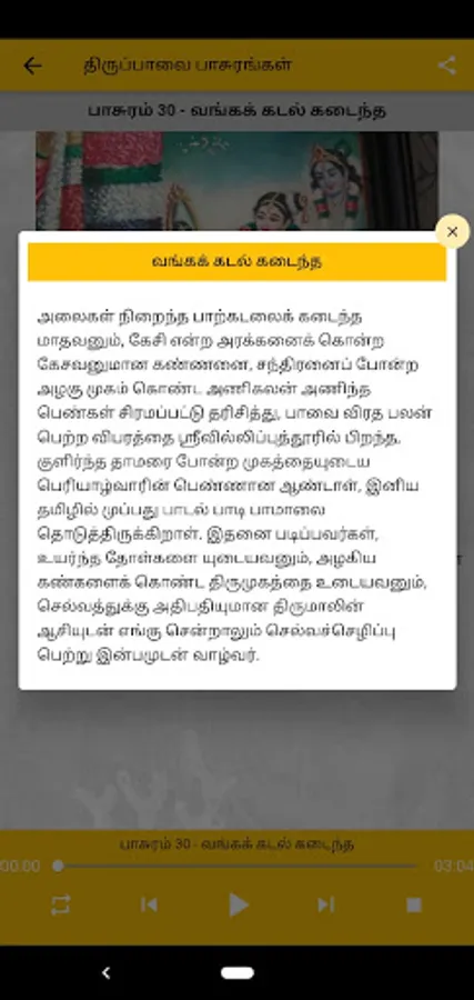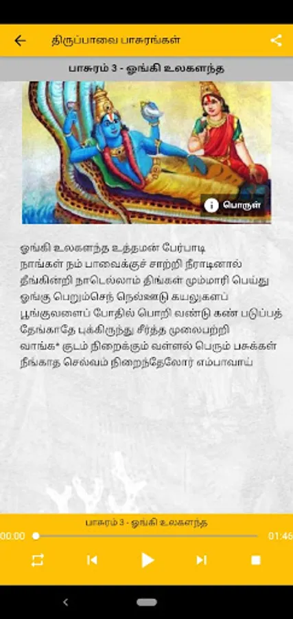 7. App supports background playing. The user is free to work on other activities on the mobile, while the pasuram is playing in the background.