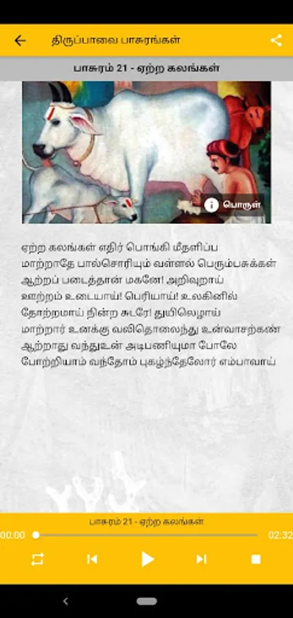 2. Every pasuram page has add-on page to display the meaning conveyed