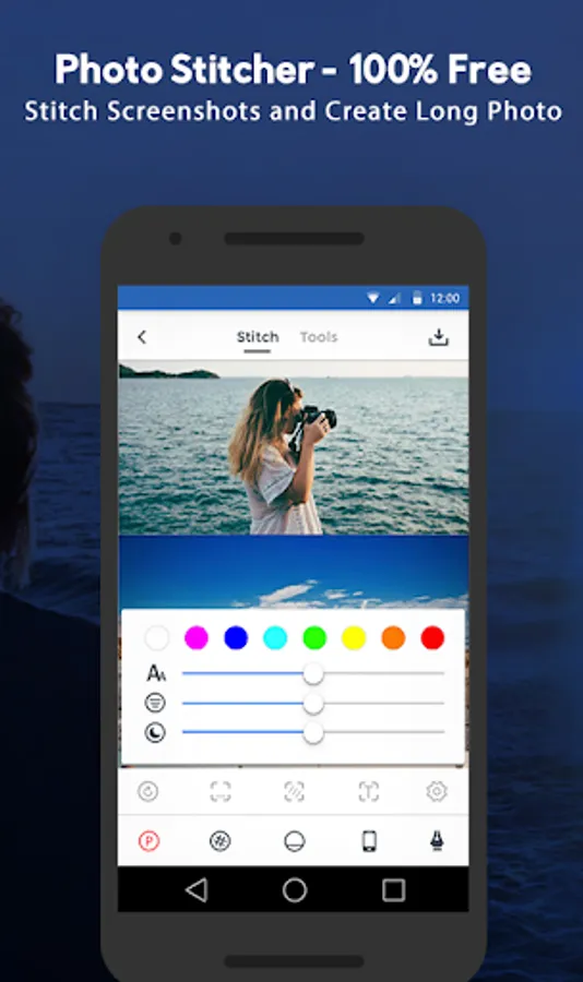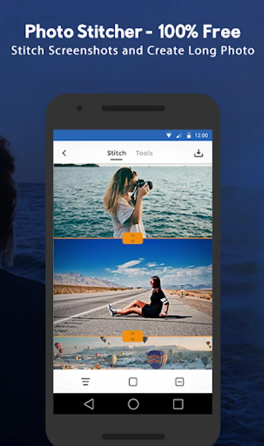 PhotoStitcher is a powerful panorama stitcher APP that enables users to merge multiple images/photos/screenshot together. It could also help you to create one single and long screenshot that extends beyond the screen's limit with a few clicks.