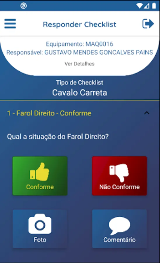 Application used to check equipment, trucks and machines of the company Vertical Investimentos.