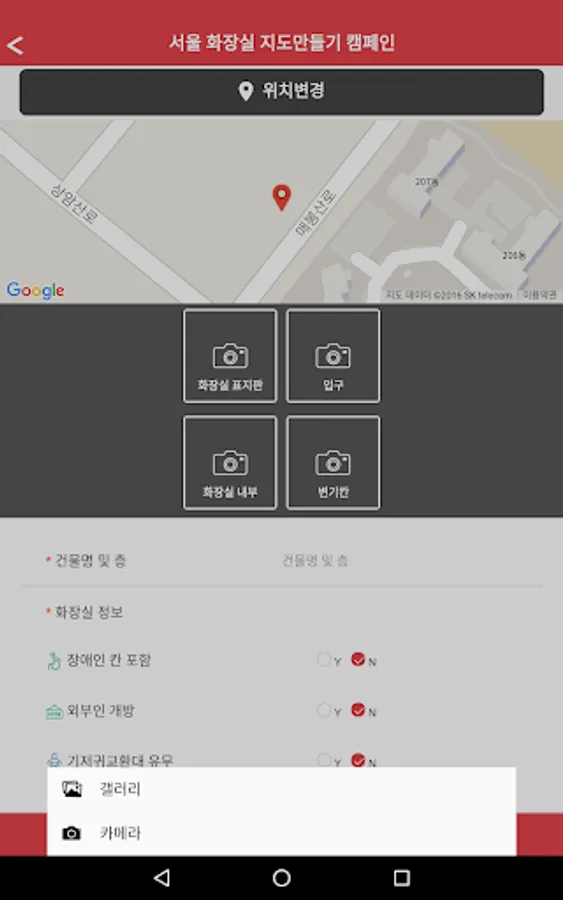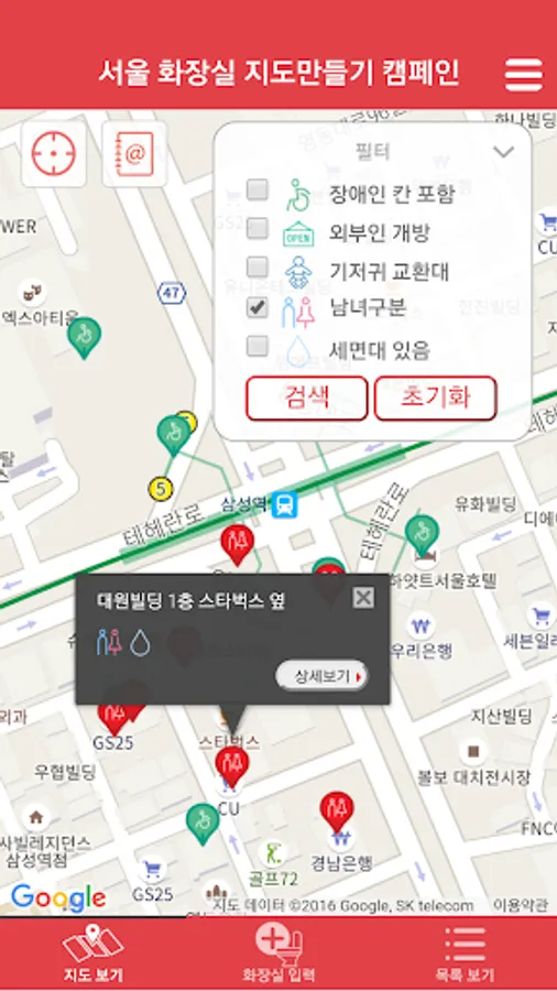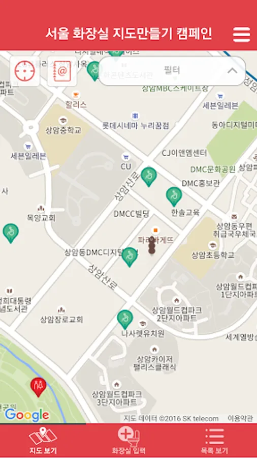 Anyone can chaewogal the map by entering the position and information of the bathroom.