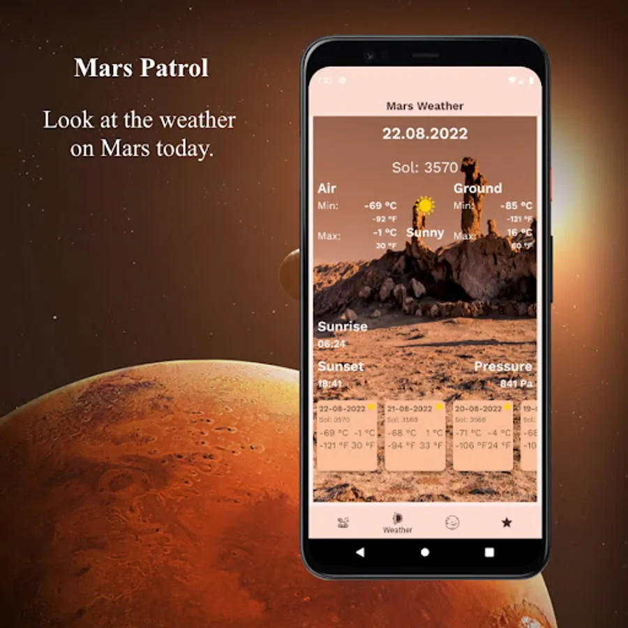 Mars is actually pretty cold! In orbit, Mars is about 50 million miles farther away from the Sun than Earth! That means it gets a lot less light and heat to keep it warm. Mars also has a hard time holding onto the heat it does get that's why this app is useful to know all the weather on our neighbor planet.