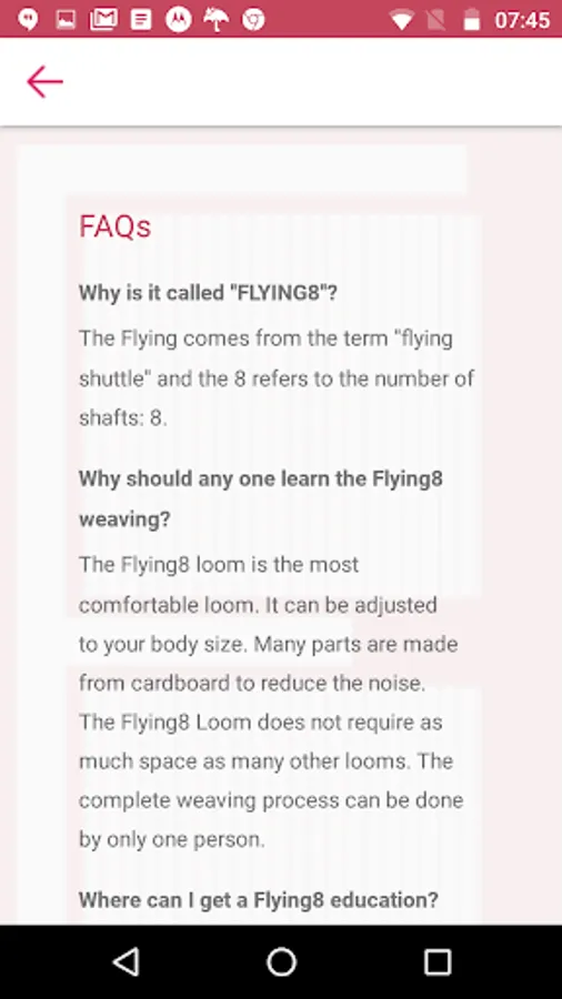 The app is a tool, a reminder, a teacher to guide weavers through the weaving processes on the Flying8 Loom.