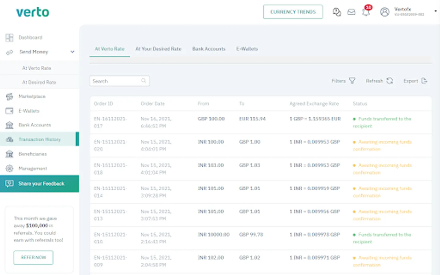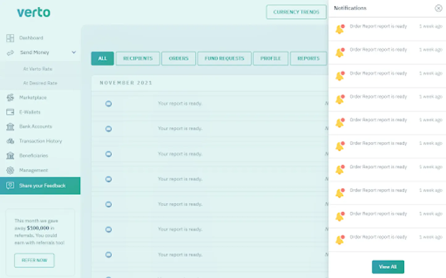 - Transaction reporting in all currencies