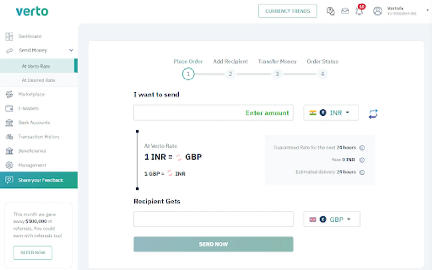 Send up for $15,000 free (first transaction only)