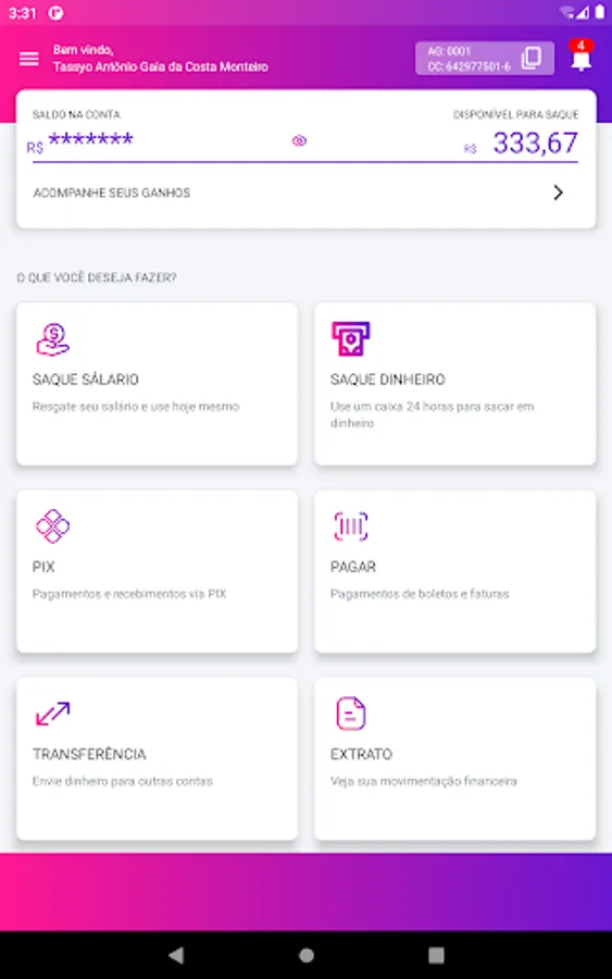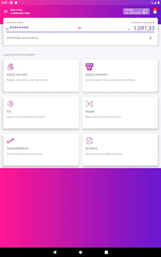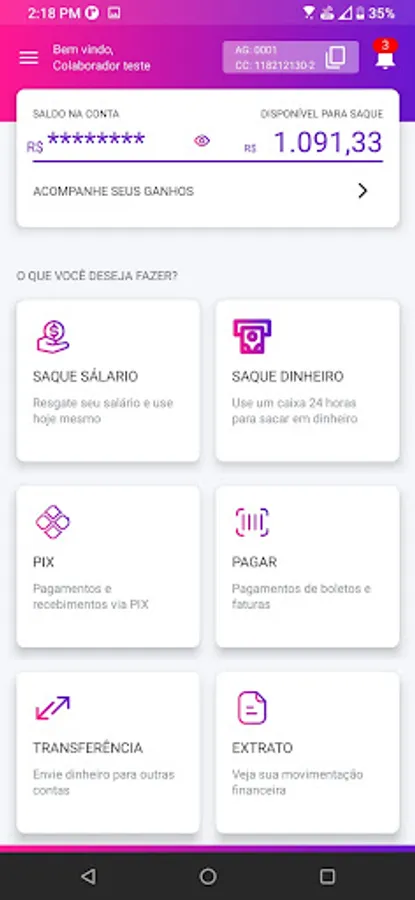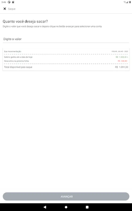 3. After the advance is made available, it is possible to pay bills, make PIX and make TED.