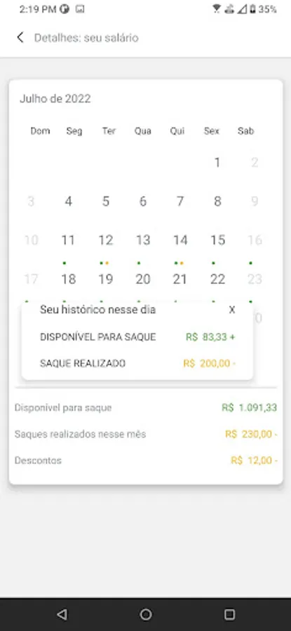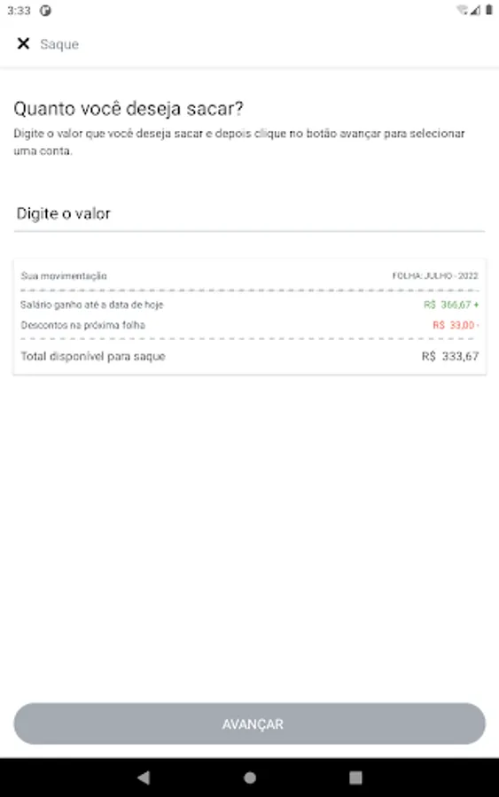 1. It is necessary to have a VertPay digital account to request advances. Free account for the salary advance routine;