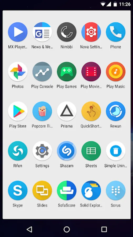 • Nova, Action, ADW, ADWex, Apex, Atom, ABC, Aviate, Everything.me, Go, Inspire, KK, Lucid, Holo, Holo HD, Next, Nougat, Nine, M, Mini, Smart, Solo, Themer, TSF, V, ABC, Zen UI, Zero, Evie, L, Lawnchair and many more