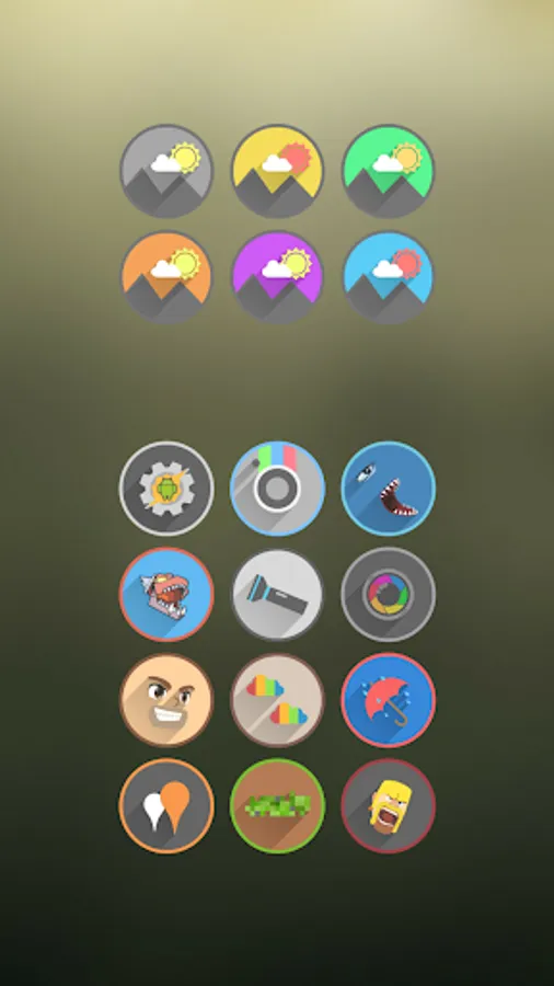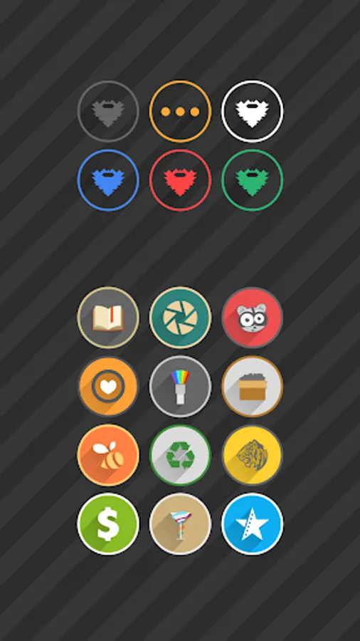 CIRCLE, LONG SHADOW AND RING-AROUND ICON PACK! EACH AND EVERY ICON AND ITS COLOR IS DESIGNED CAREFULLY TO ACHIEVE INCREDIBLE FEEL AND MODERN STYLE!