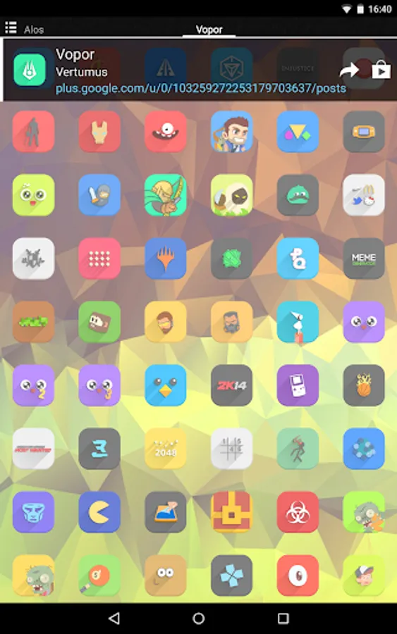 Distinctive and perfect, comprehensive and individual, Vopor brought something modern! Made with very extensive level of details on each icon with pastel, but still vivid palette of colors. Inimitable style just landed and it’s ready to materialize your devices!