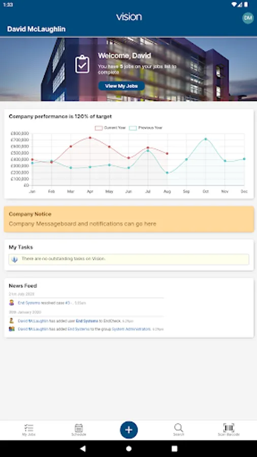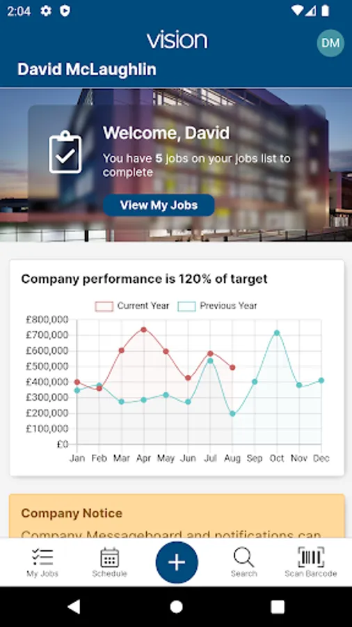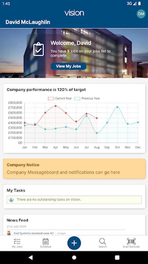 The Vision App allows for users out in the field to quickly and easily find details of appointments, complete job bookings, manage their holidays and leave, and track progress - all in one simple to use app.