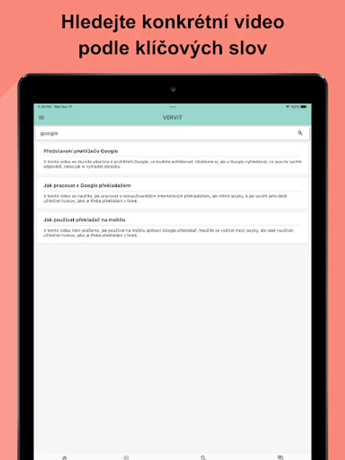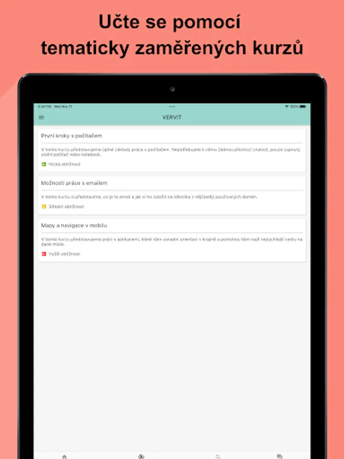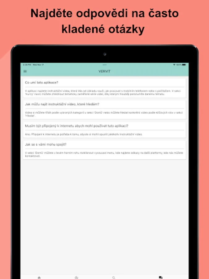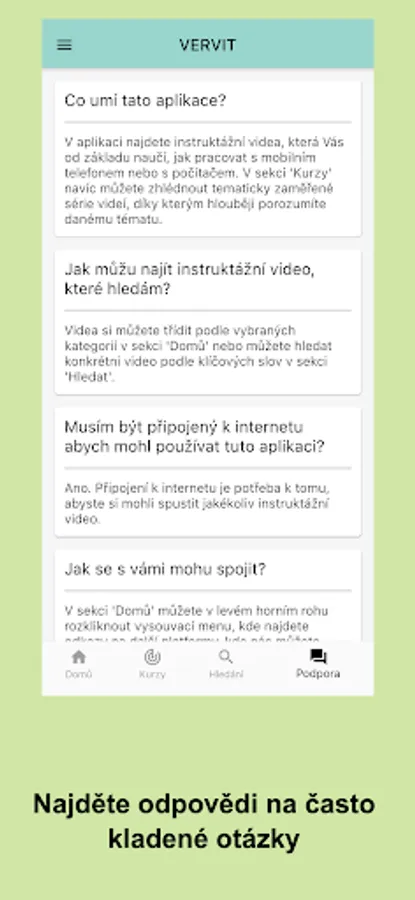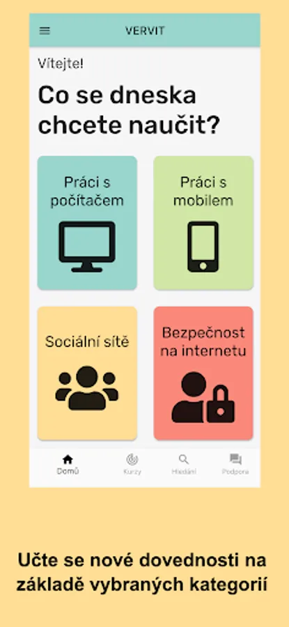 Vervit is a student non-profit project that seeks to expand and improve technical skills among older people. In our application you will find instructional videos that will teach you from the ground up how to work with a mobile phone or computer.