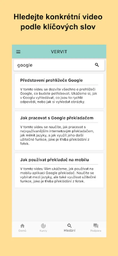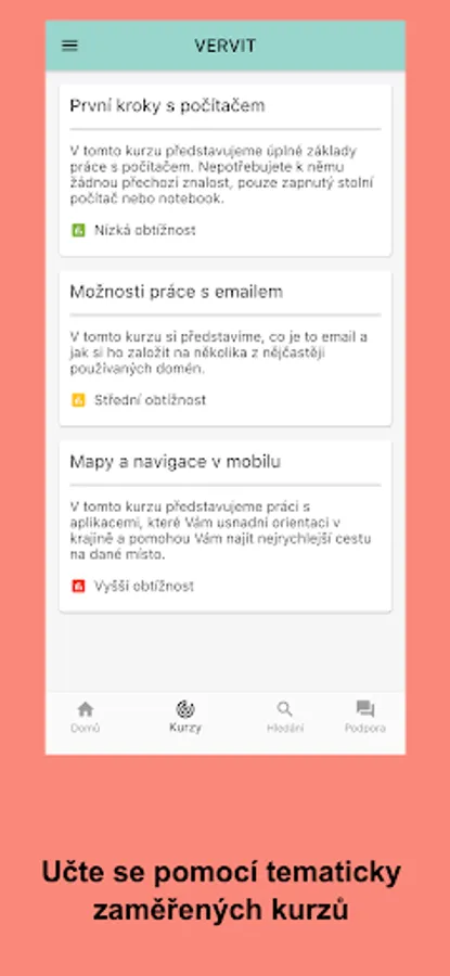 In the "Courses" section, you can watch thematic series of videos, which will help you gain a deeper understanding of the topic, such as creating an e-mail address or working with a map and navigation on a mobile phone.