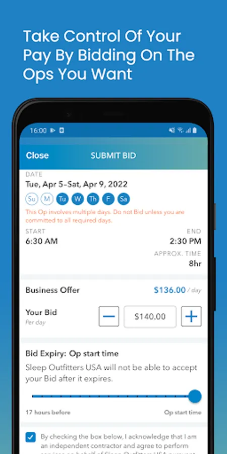 Your Operator Profile is displayed to businesses. Your profile is the primary way businesses decide which bids to select to fill their Ops. Please make sure all your relevant skills and certifications are accurate to maximize your marketability when bidding on Ops.