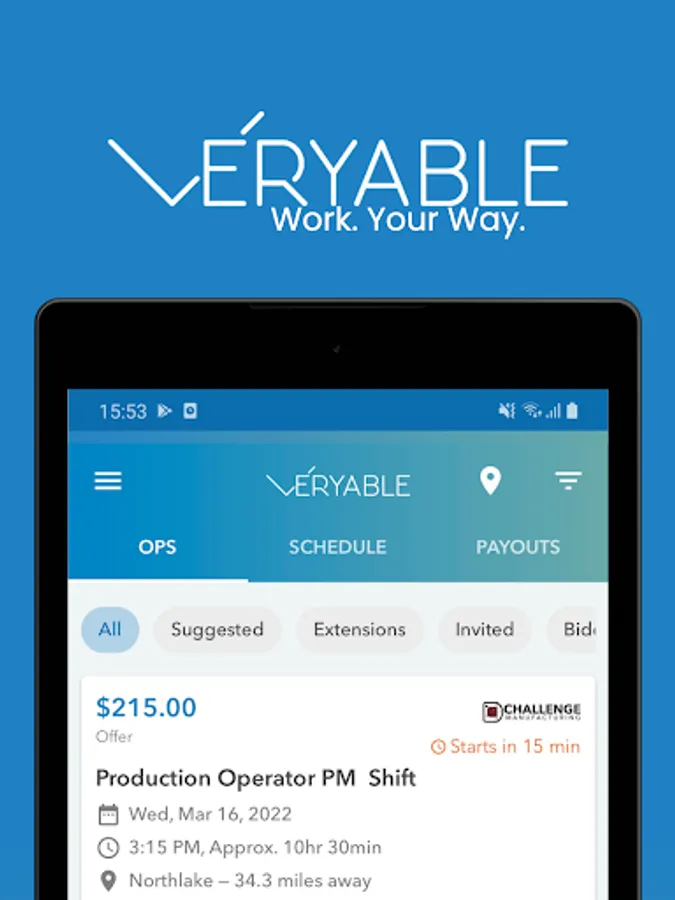 - Download the Veryable app, bid on flexible opportunities or gig work and start working today