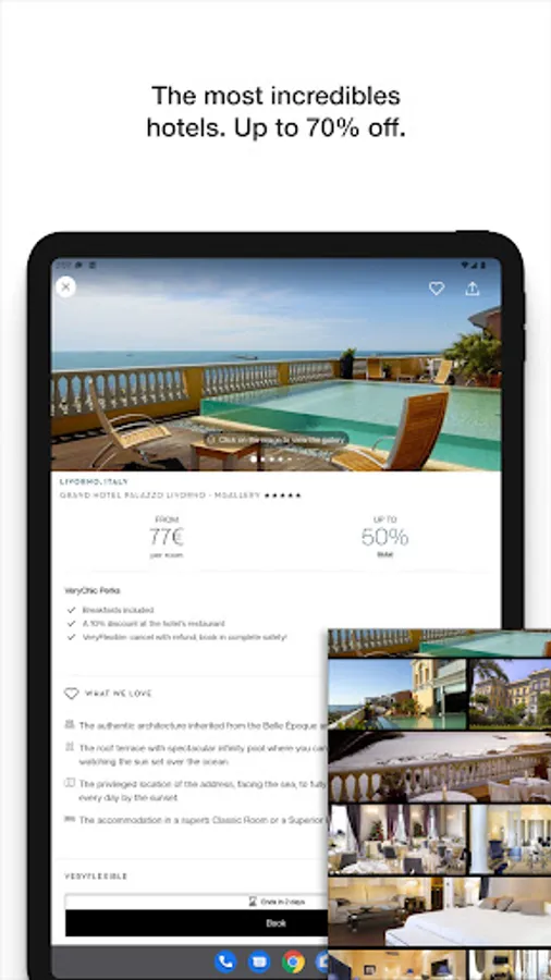 Stay in the most beautiful hotels in the world, with up to 70% off.