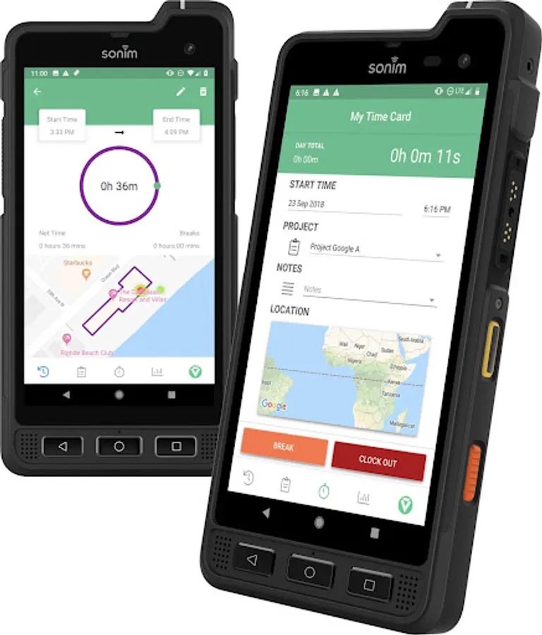 Works with the custom buttons on the world’s most ultra-rugged Android cell phone from Sonim: GREEN button controls timer start & pause while YELLOW button clocks user out.