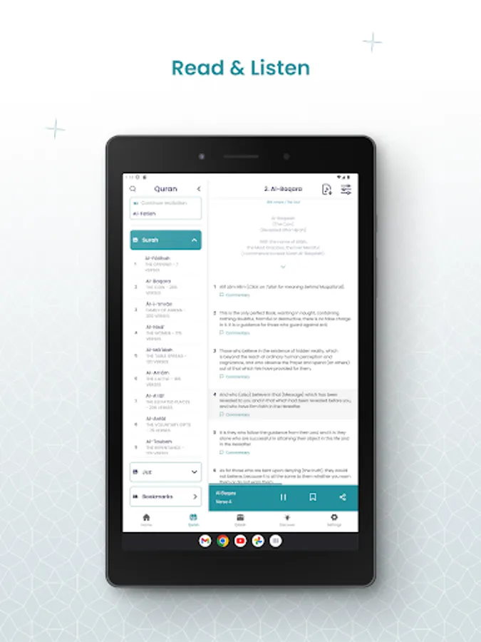 Read, explore, search, and listen to the Holy Qur'an on the go with the most user-friendly Holy Qur'an app available - free and without ads.