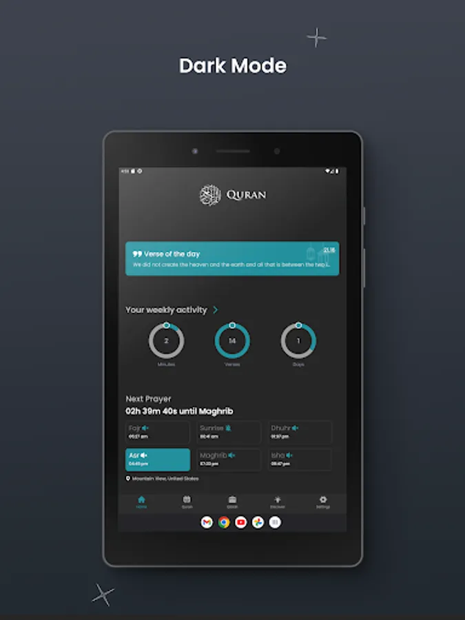 - Customize the Quran app to your liking with dark mode and four beautiful Arabic and English fonts and font sizes.