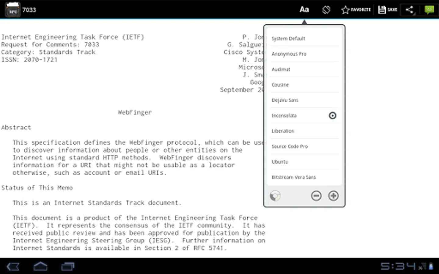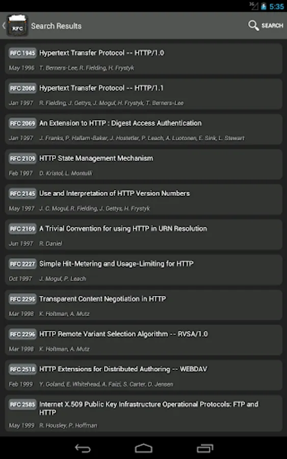 Pocket RFC is your handy android reference application to quickly discover and explore the Internet Engineering Task Force (IETF) index of Request for Comment (RFC) documents.