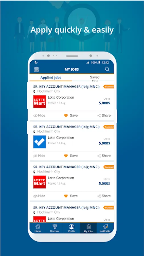 • No need to fill in multiple application forms – apply for a job with just a click of a button.