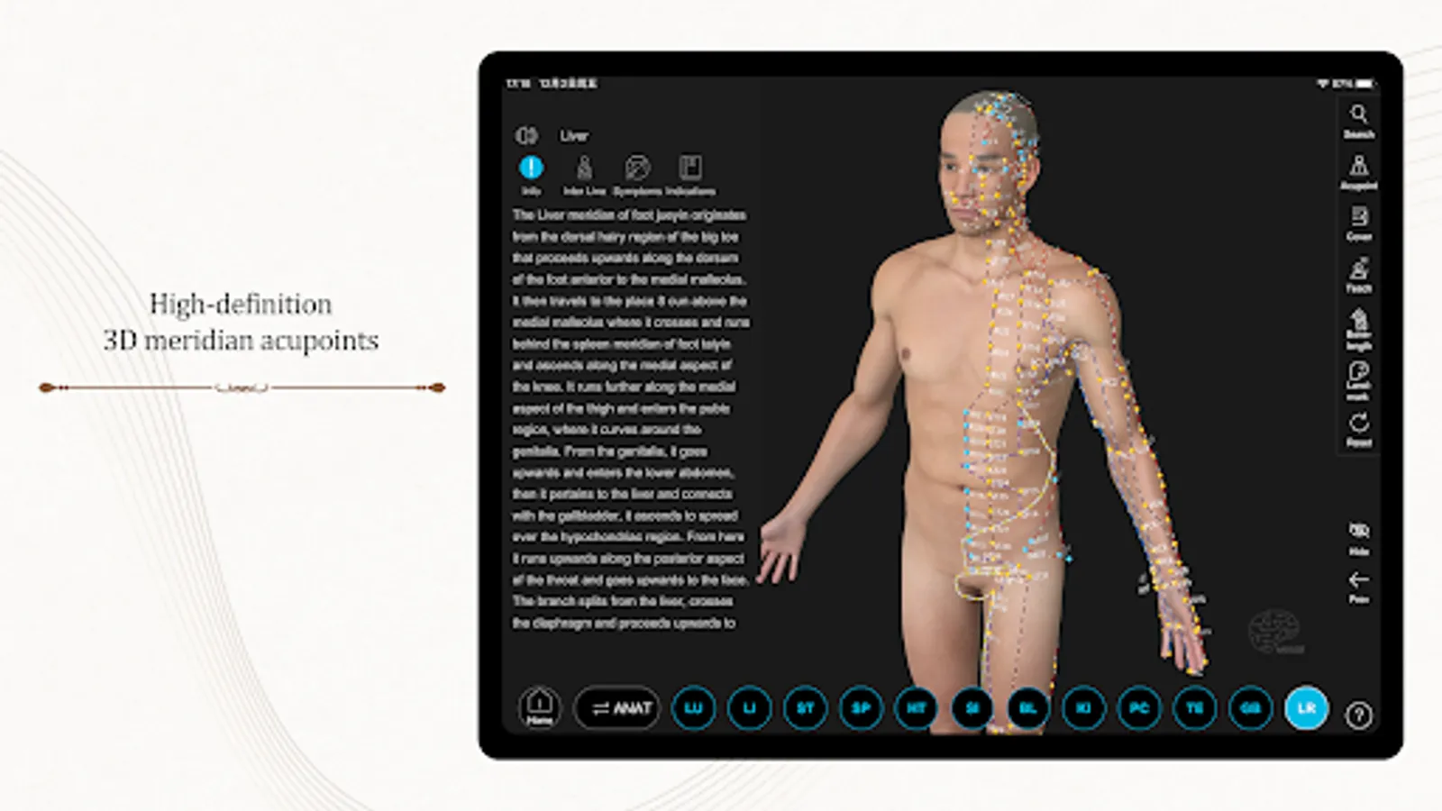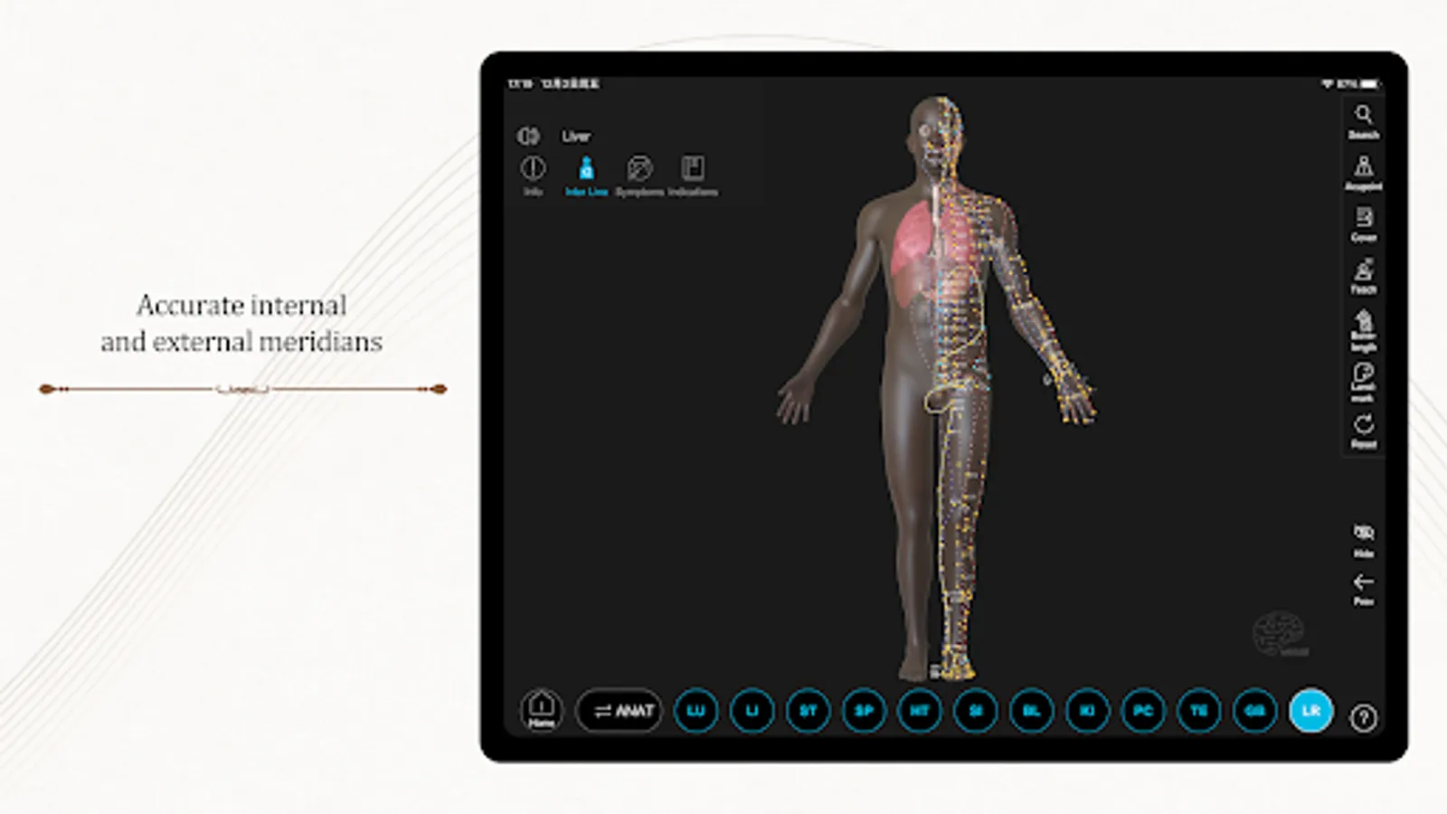 2.Support zoom in and out, rotation and translation, transparent and hidden operations, interesting learning acupuncture.