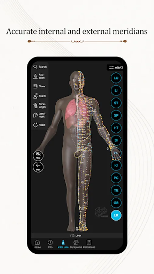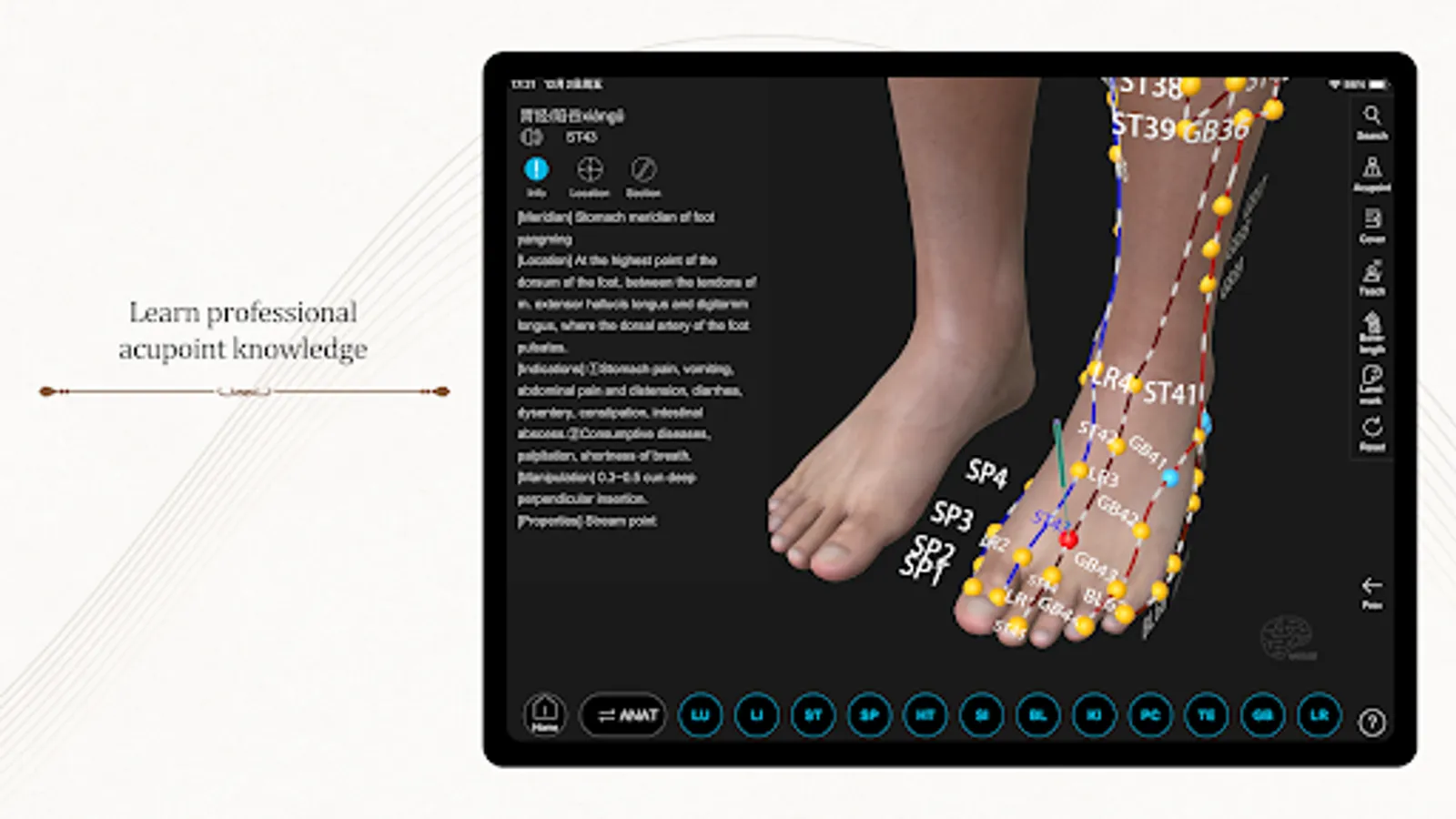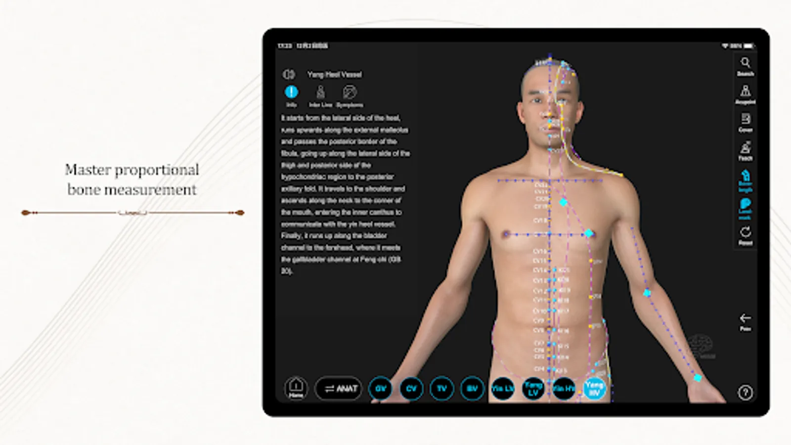 2. Beginners of acupuncture and moxibustion: software can be used to consolidate knowledge of acupuncture, and accurate positioning can be achieved with the help of powerful acupoint search engines and bone-length landmark. Compared with the anatomical structure, the accurate grasp of the Angle of acupuncture.
