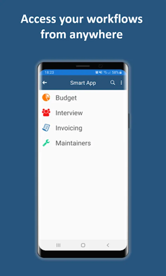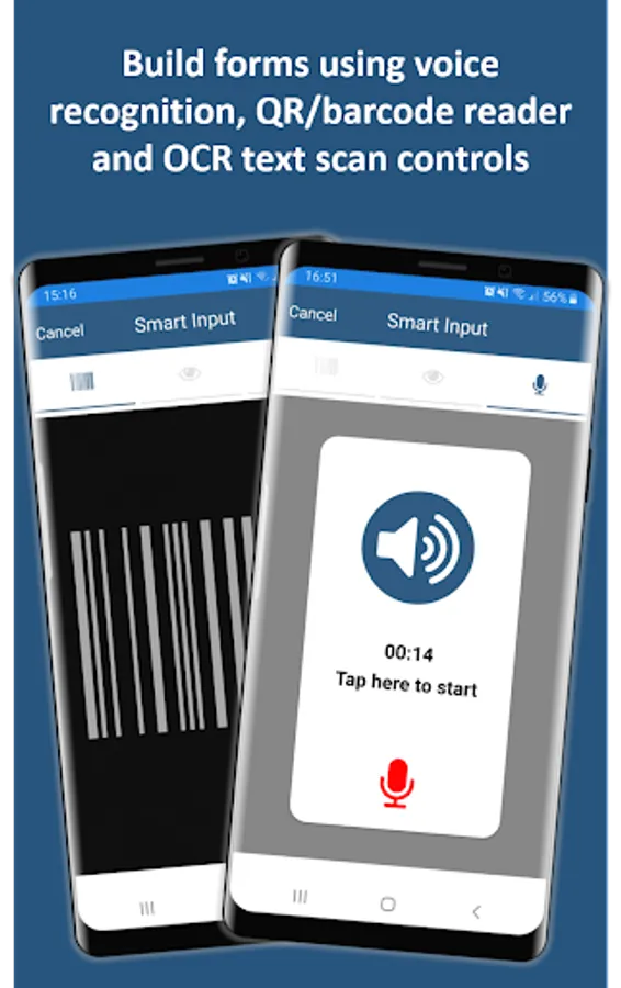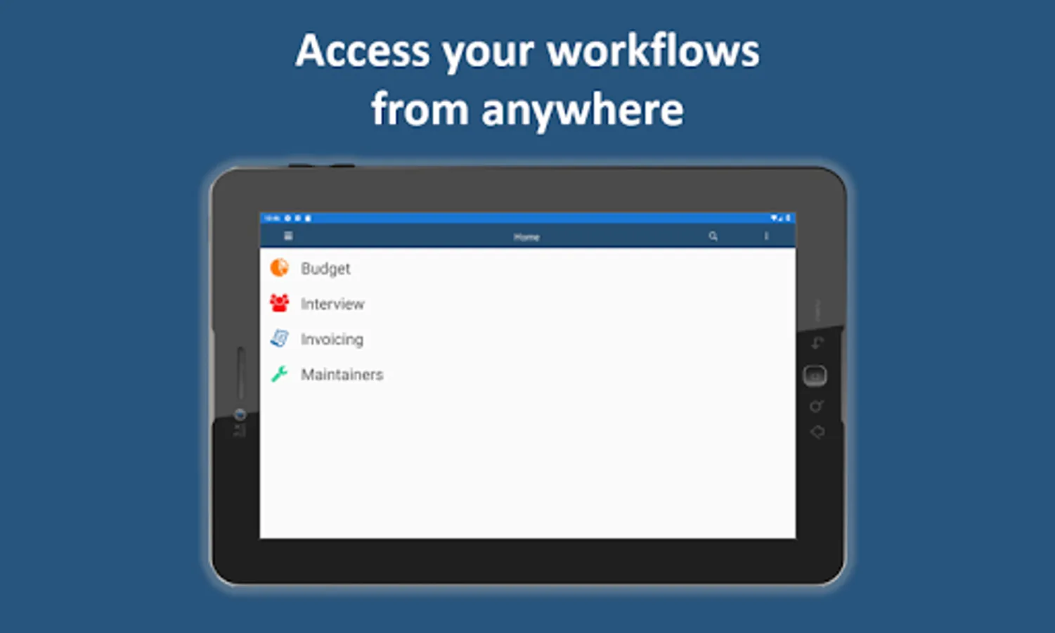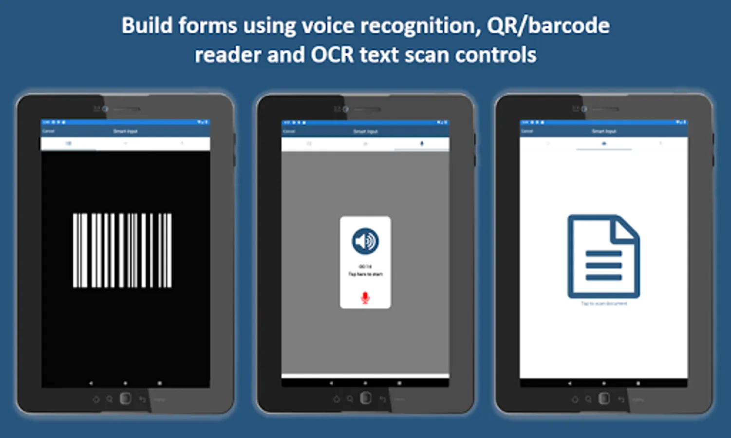 - Take pictures, recognize text voice and QRBar-code, geo-localize data input and receive workflow notifications