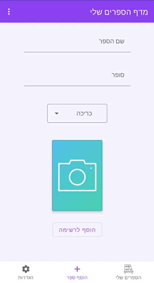 - You can add a book to the database which includes: book name, author name, cover type and photo.