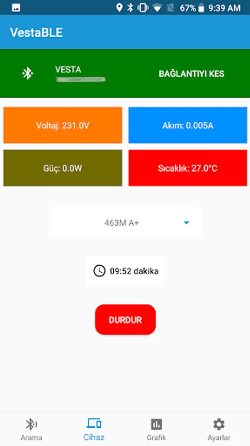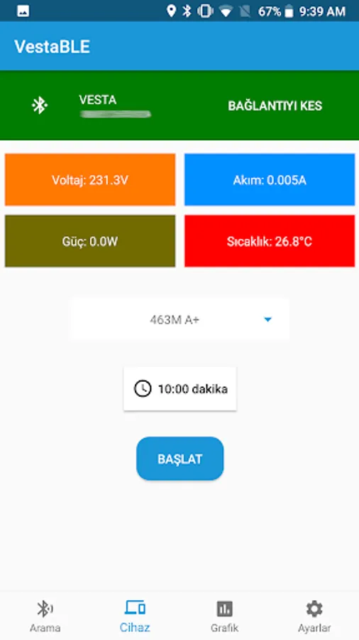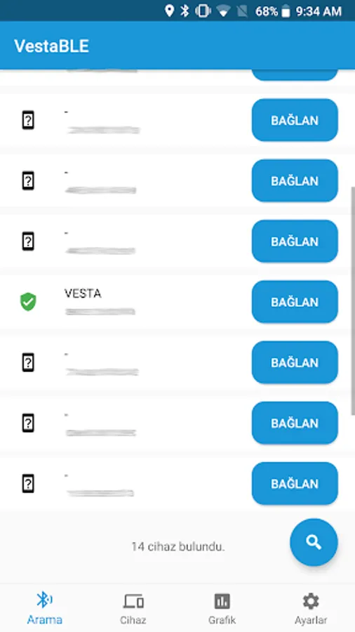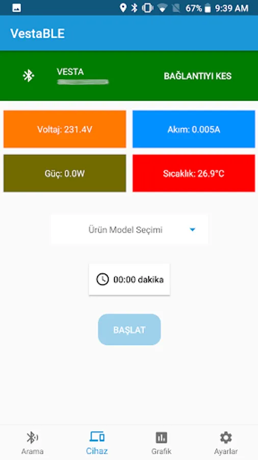 Vesta BLE Kompresör Test Screenshots