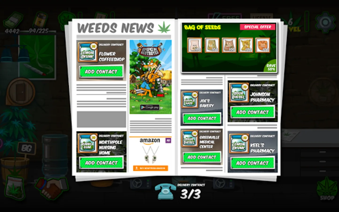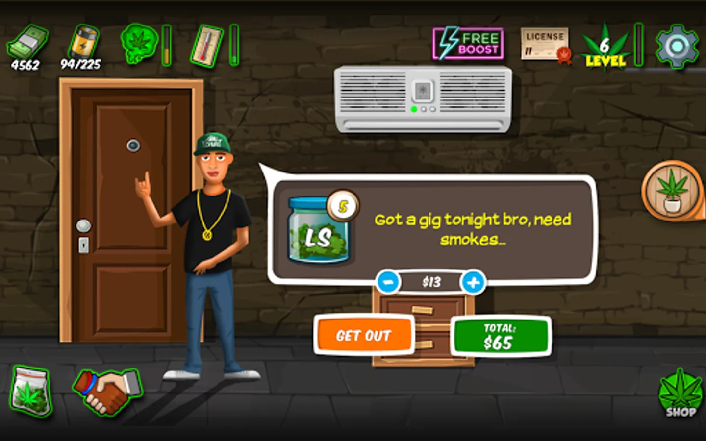 Make friends with the locals to spread the news about your store, sell them your first-class product, and let everyone know of you as a Kush Tycoon. Upon successfully doing business your store may attract a lot of customers, even from outer galaxies and alternative realities.