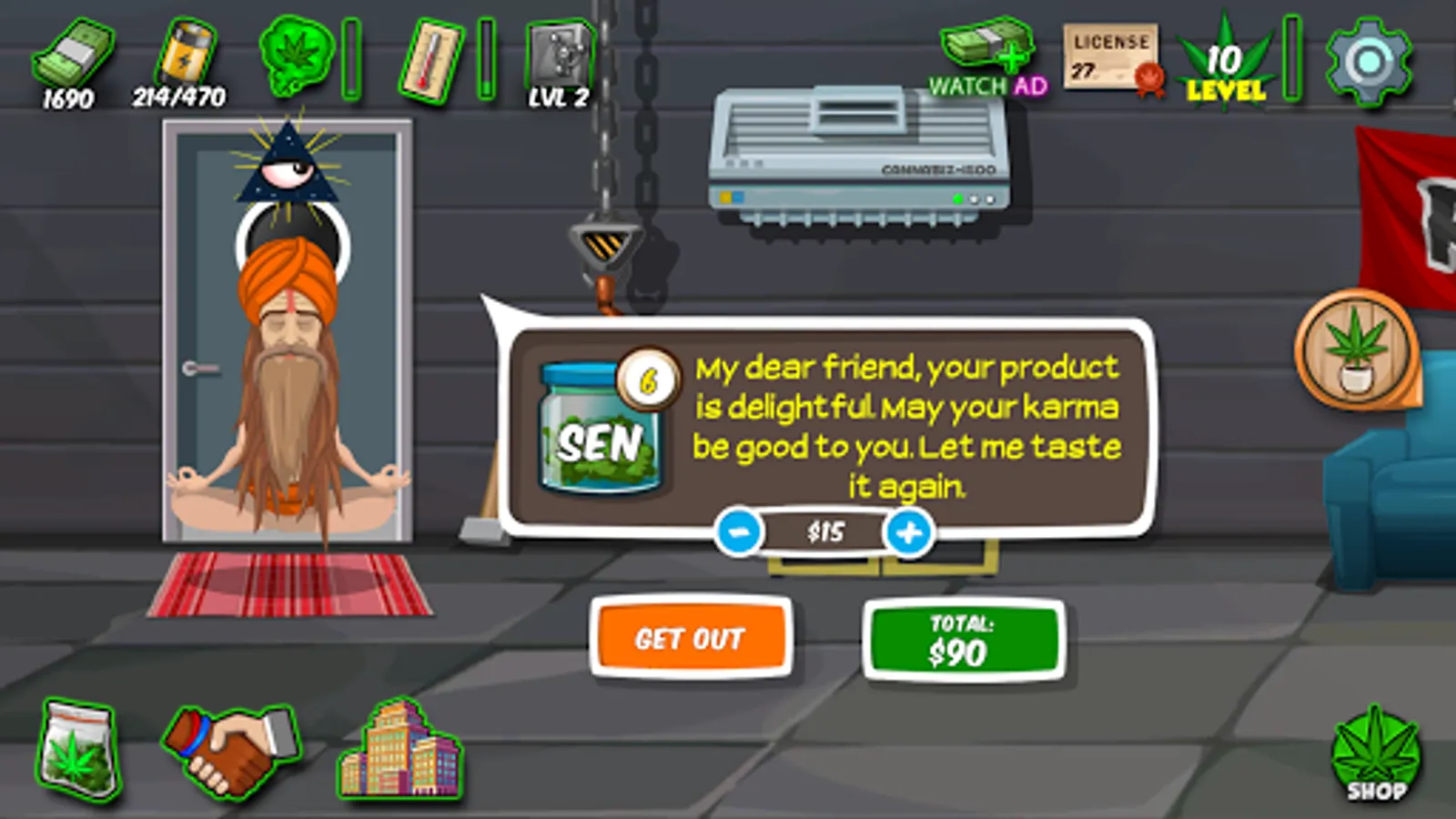 With more money and reputation you are a real weed growing mogul, acquire bigger rooms for your bud farm, use newspaper to get wholesale cannabis orders from coffeeshops, hospitals, bakeries, pharmacies.