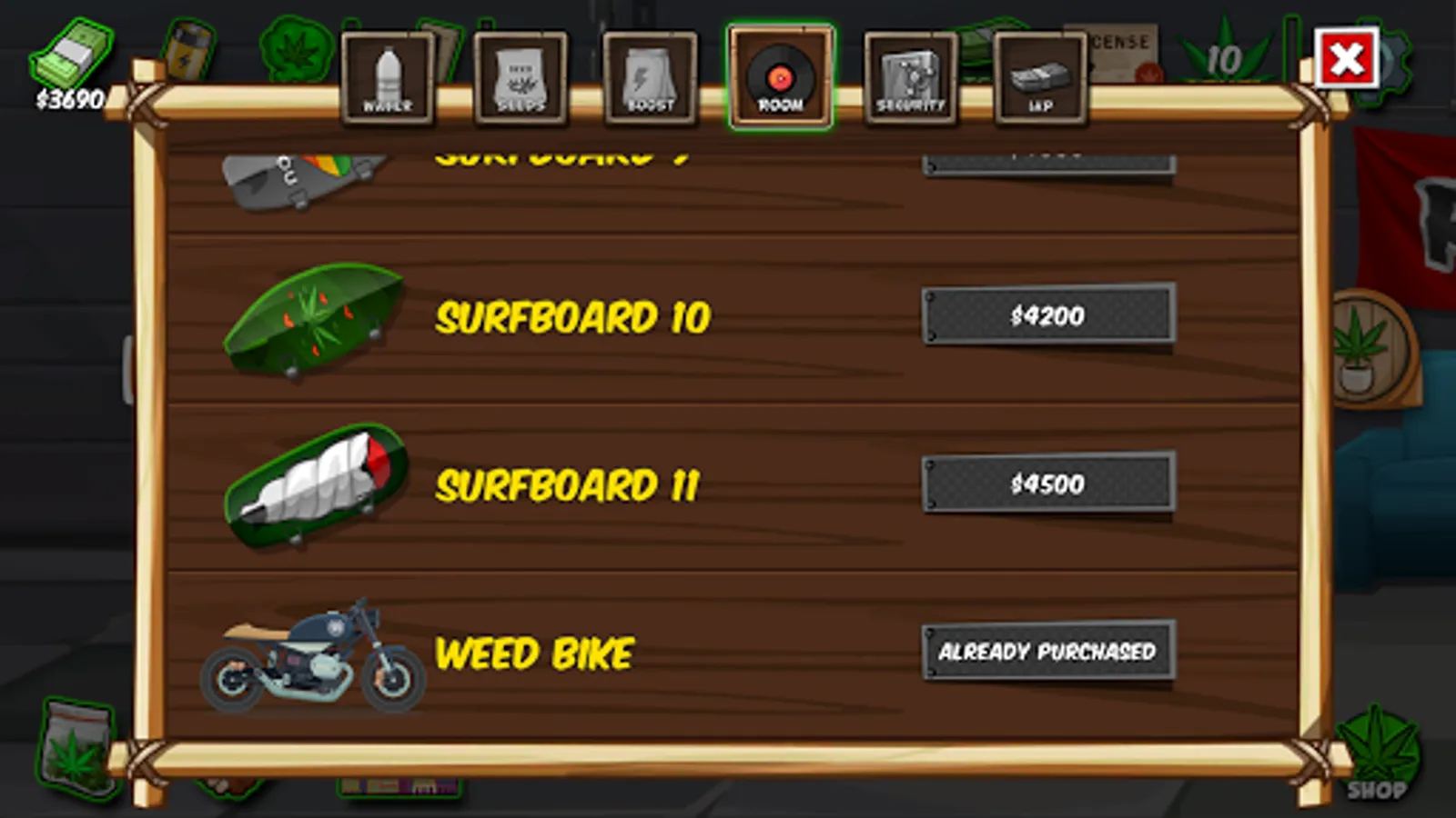 Progressing through weed growing game