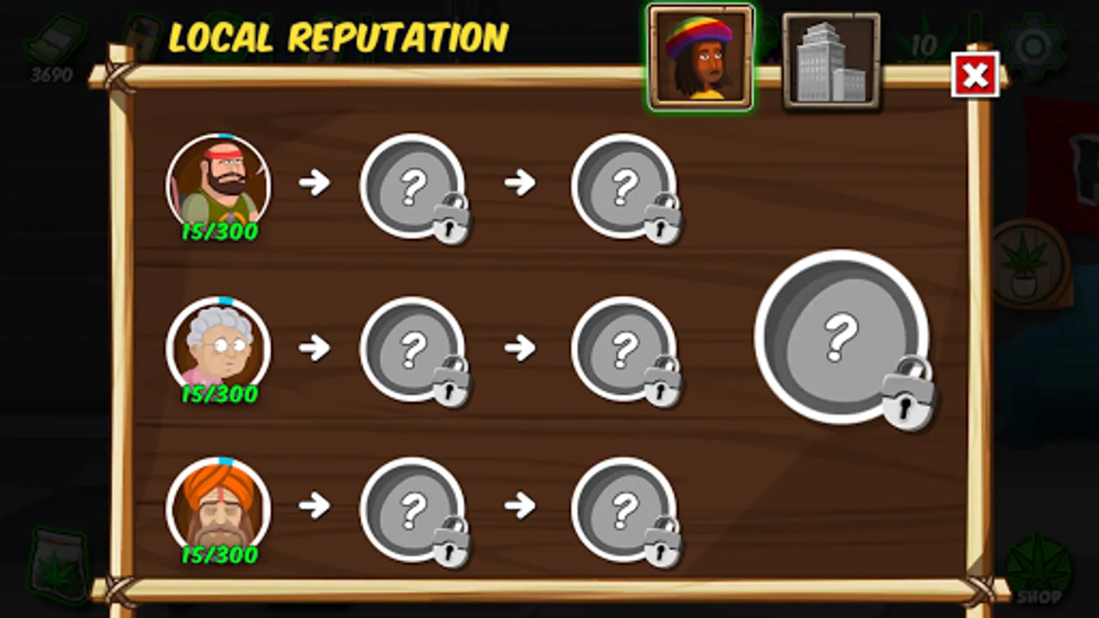 Meet one of the dopest buds games: Kush Tycoon: Grow Best Buds in Hempville. Start a weed growing career in the Rasta Side, excel in marijuana growing, expand your pot empire, mature and proceed through cannabis growing game to reach the new weed empire locations: Cannabis Hills, Hollyweed, and Stoned Circle.