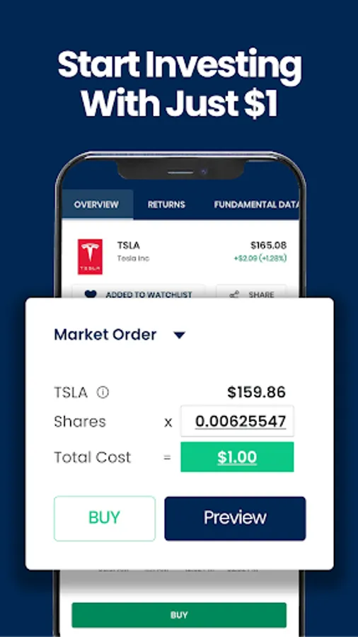 Vested features make investing in high priced stocks such as Tesla, Apple, Google, Amazon, Berkshire Hathaway, or ETFs such as Vanguard's S&P 500 or PowerShares Nasdaq ETF affordable.
