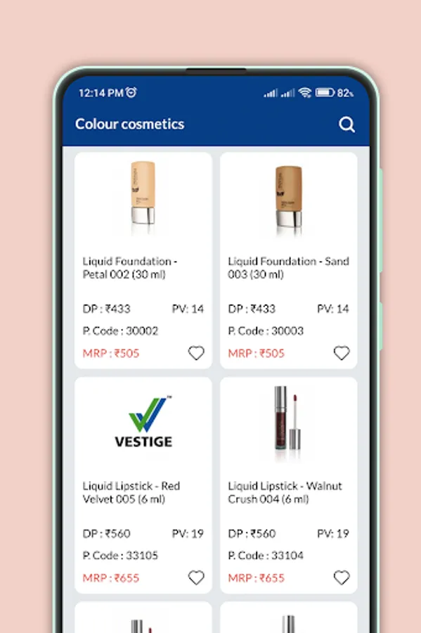 You select the right app. This app helps you to find any kind of vestige product rate mrp,dp & pv. This app has its own multiple function to find product rate at a very easy step.