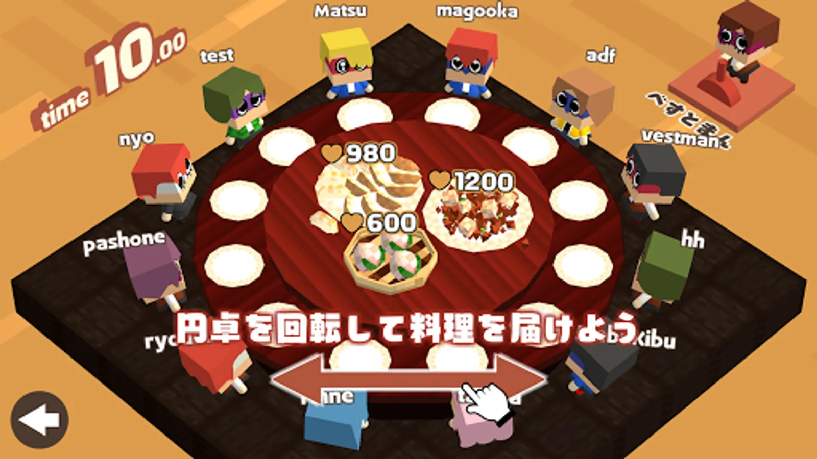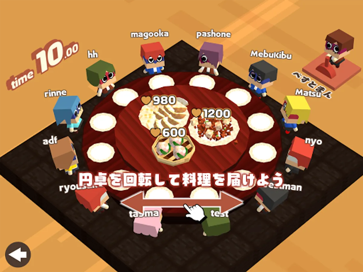 Turn the round table in 10 seconds and serve the food on the table to your customers.