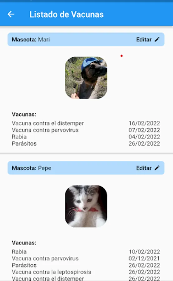 An application that complements the services provided by veterinarians, taking into account its ease of use and its pleasant interface in continuous improvement and evolution through updates as needed.
