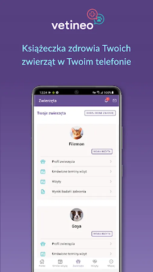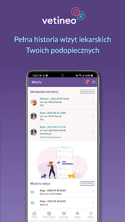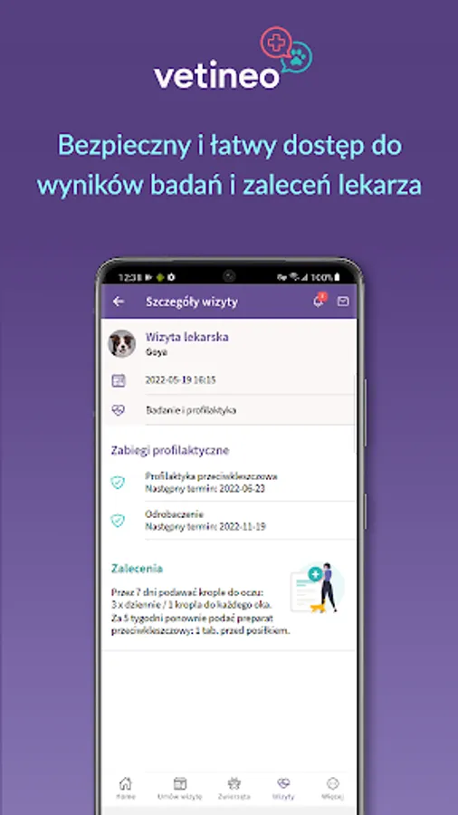 Thanks to Vetineo, you will be in contact with the veterinarians who care for your animals. Do you need to arrange a veterinary visit? Make appointments at Vetineo whenever you need and at times that suit you. After each visit, you will have easy and safe access to information about your pet - visit history, test results and doctor's recommendations.