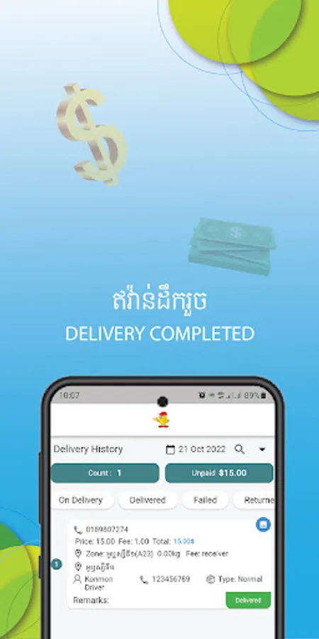 Observing the growth of the transportation sector in the Kingdom of Cambodia, Kon Mon Delivery was also established in 2021 to contribute and promote the transportation sector to be more widespread and more prosperous in the country. With the company's proverb "Fast delivery and always trust" "especially good service and high confidence, Kon Mon Delivery has received strong support from all customers who use our service. Kon Mon Delivery provides services and delivery of small and large goods in accordance with the laws of Cambodia. To be more convenience for customers, Kon Mon Delivery Company has also created the delivery app. This delivery app will make it easier for every customer to order, purchase and deliver their goods quickly and confidently. Kon Mon Delivery will strive to serve the best of all customers. Kon Mon Delivery would like to thank all the customers who have always supported our service and this app. We wish all customers with healthiness, success, longevity and vitality forever.