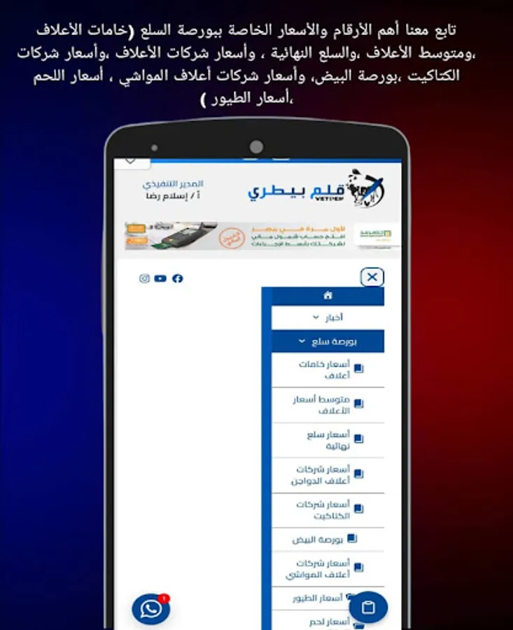 “Veterinary Pen” website, owned by (Vet) Company for digital content.. It is the first media platform that discusses and talks about all issues related to the production process of livestock, poultry and fish in Egypt and the Arab world.. Its motto is “Commitment to Specialization.”