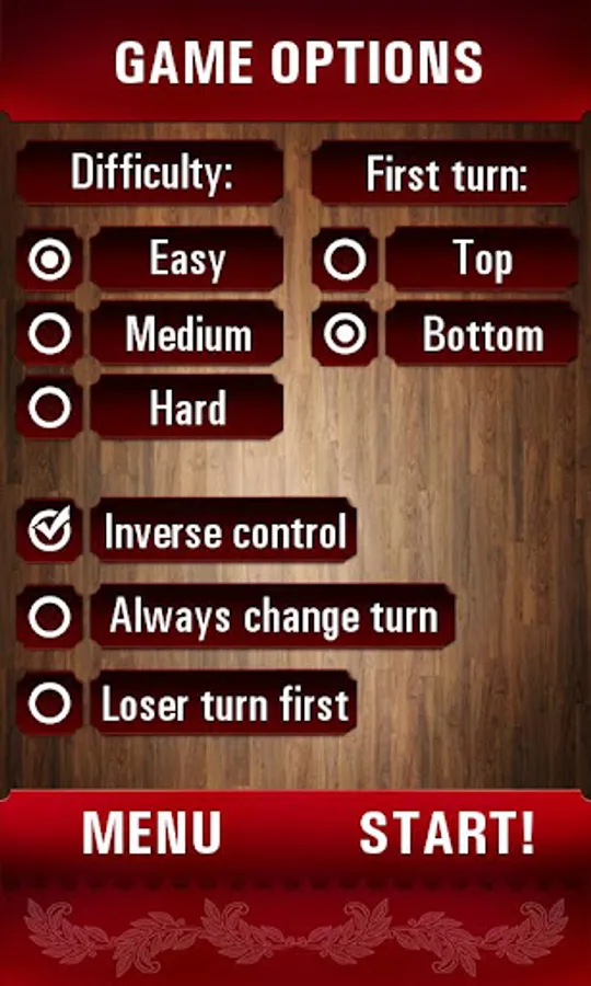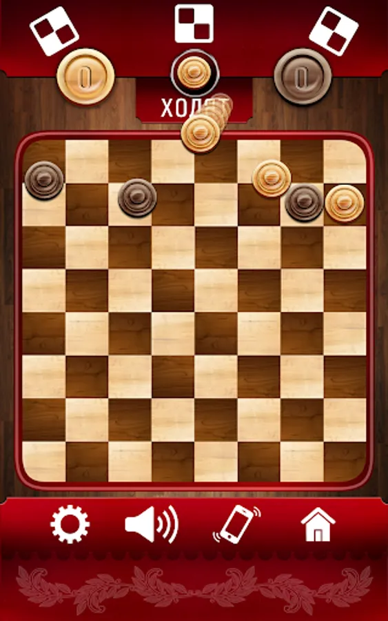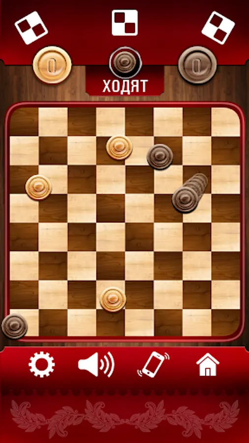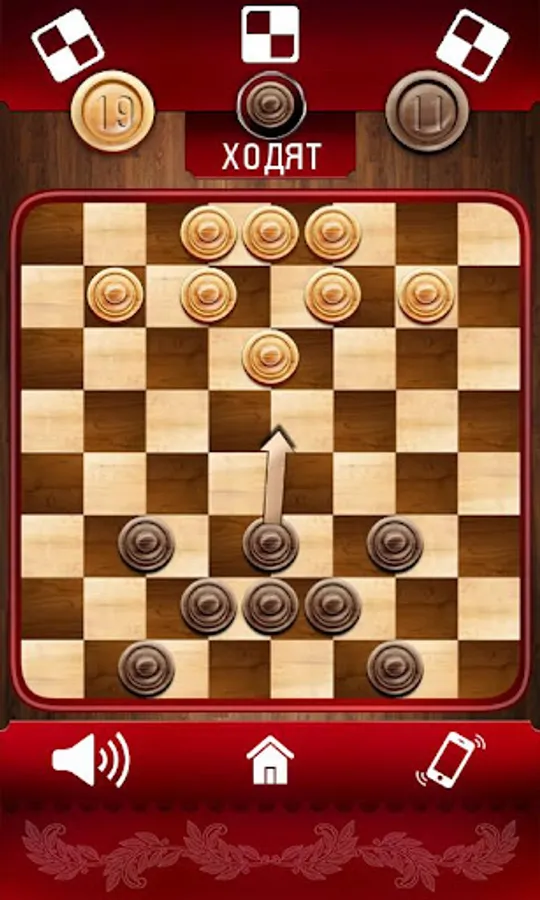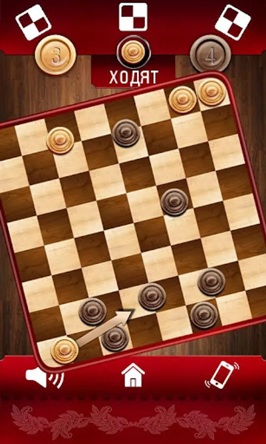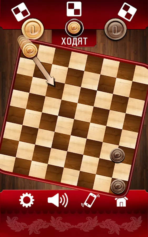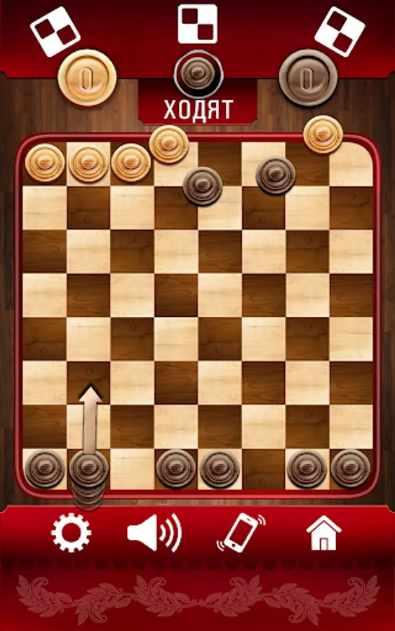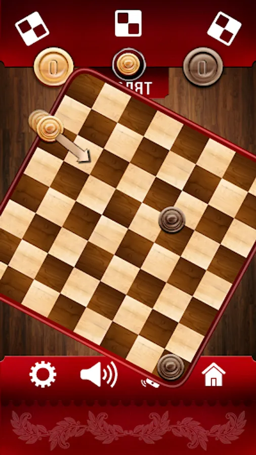 To move checker you need tap it, move finger to the opposite side of the impact (if checked "Inverse control" option) or to the direction of impact (if disabled "Inverse control" option) and release.