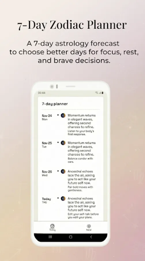 Astrology is not only about today’s horoscope. Luvsa shows the emotional “weather” of the whole week so you can plan with more awareness.