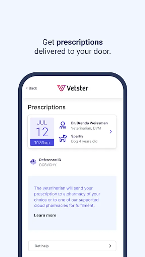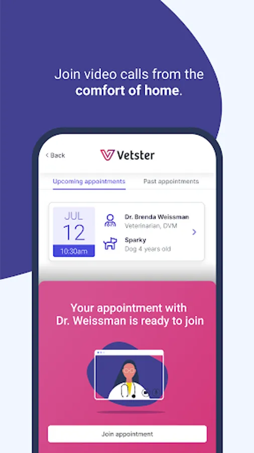 Download the Vetster app to find a trusted veterinarian for your pet. Book an appointment at a time convenient to you. Vetster veterinarians answer your questions and concerns through secure online video appointments. Where available, Vetster veterinarians can also provide prescriptions for medication. Vetster is here to help from initial concern to diagnosis to prescription delivery.