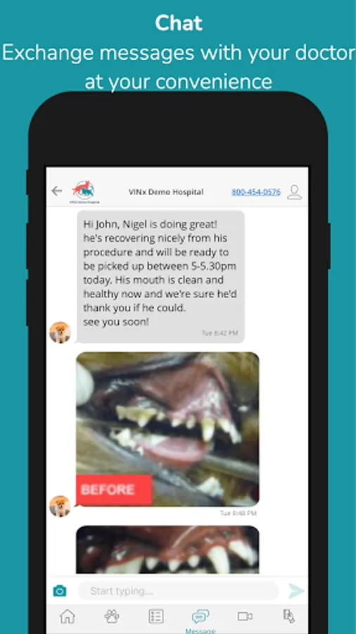 - Participate in live, 2-way regular (non-video) chat with your veterinarian.