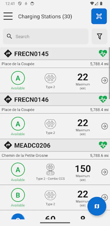 - Find charging stations through map or list