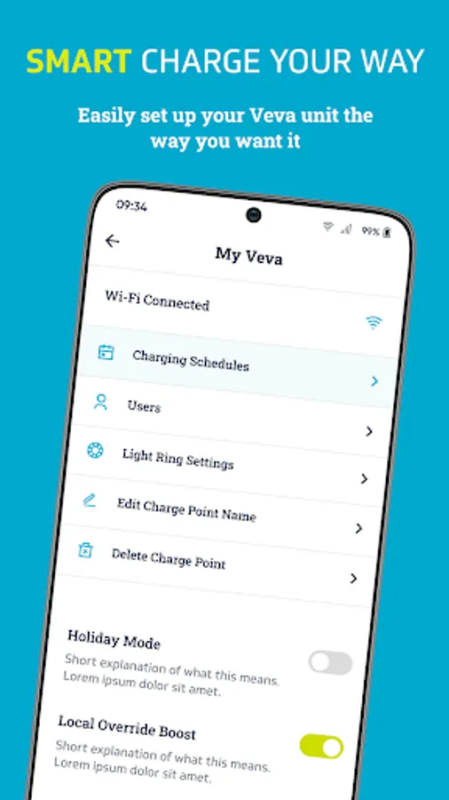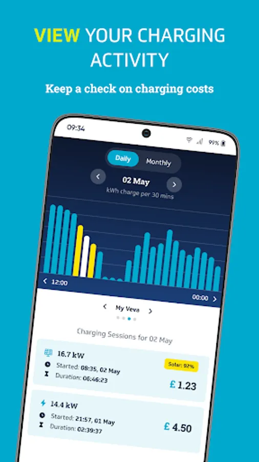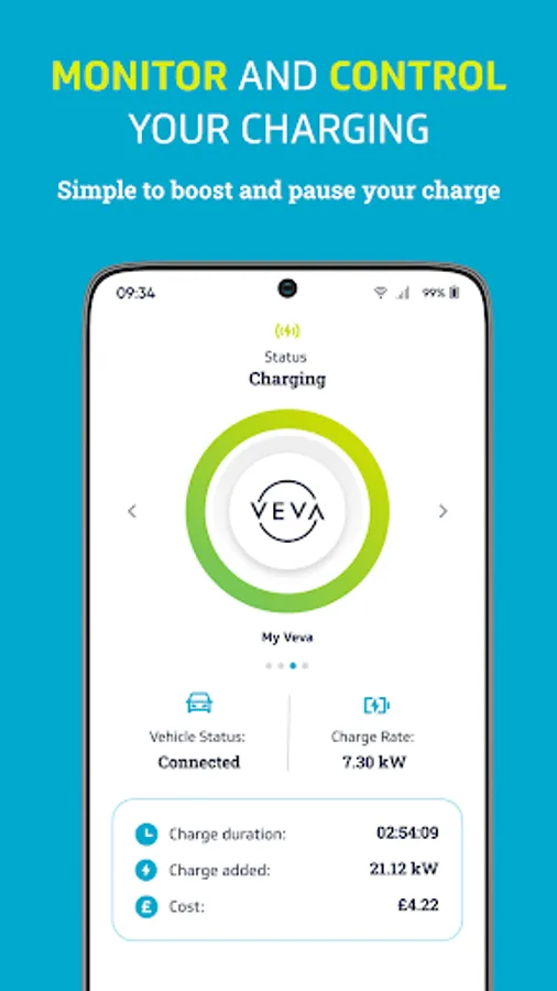 Make smart charging easy by managing, monitoring or customising your VEVA charge point remotely, at any time: