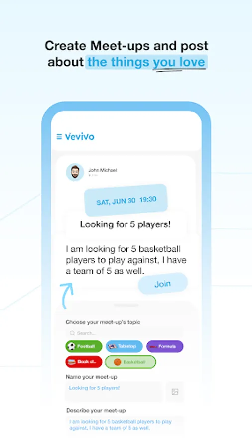 Vevivo goes the extra mile. We provide place suggestions based on your current location when organizing a meet-up, ensuring you have the best options at your fingertips. Plus, our cutting-edge AI suggests meet-up ideas, so you'll never run out of exciting activities to enjoy with friends and new acquaintances! ๐บ๏ธ๐ค